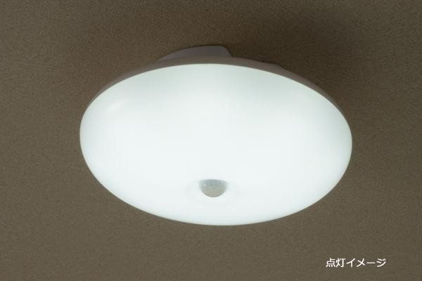 人を感知して自動点灯し、人がいなくなると一定時間後に消灯するLEDミニシーリングライトです。
