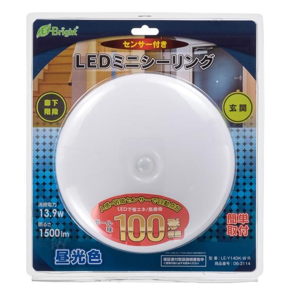 人を感知して自動点灯し、人がいなくなると一定時間後に消灯するLEDミニシーリングライトです。 製造国:中国 ※サプライヤー直送品 ※2019年2月中旬入荷分予約受付中【商品名】オーム電機 OHM センサー付LEDミニシーリングライト 昼光色 LE-Y14DK-W R