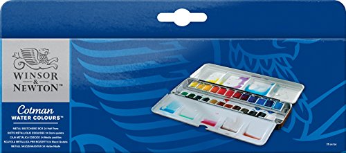 -. Title : ウィンザー&ニュートン 水彩絵具 ウィンザー&ニュートン コットマン ウォーターカラー 24色セット メタル スケッチャーズ ボックスセット ハーフパン