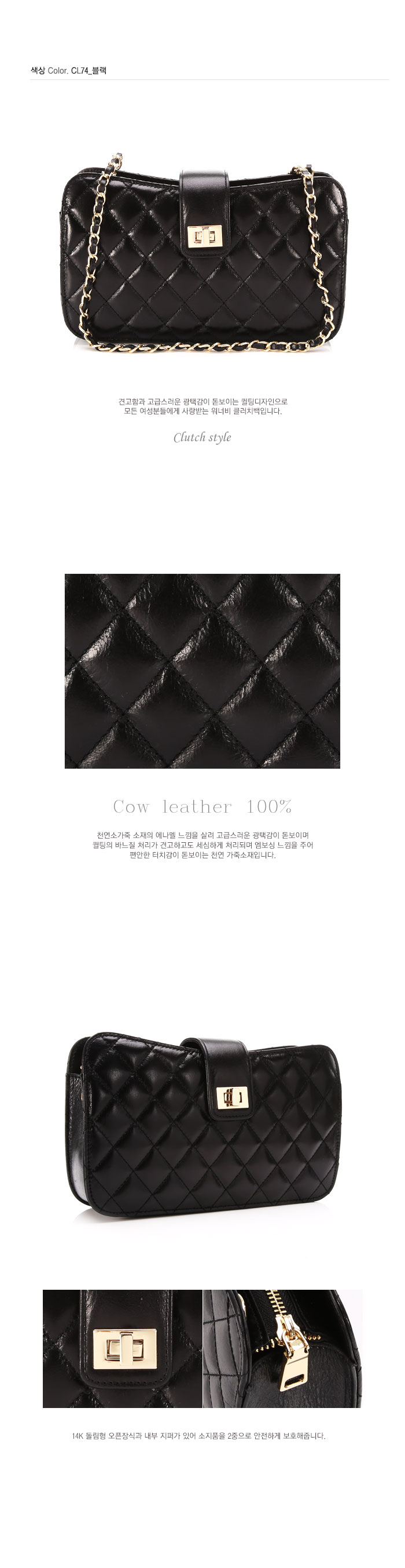 캐비어 느낌의 엠보와 다이아몬트 퀼팅 매치가 고급스러운 클러치백입니다.