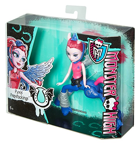 Monster High is monster huge with so many secret doors, passageways and portals, you never know what you might find within its halls -- or its walls! Deep within the catacombs of the iconic school live new beast friends for the Monster High ghouls. Half centaur-half unique monster, these monster mash-ups are real Fright-Mares! Meet characters like Pyxis Prepstockings, half Pegasus and half centaur; Frets Quartzmane, part gargoyle, part centaur; Bay Tidechaser, a combination of sea horse and centaur; Aery Evenfall, a mix of nightmare and centaur; Penepole Steamtail, one of butterfly and centaur; Skyra Bouncegait, ghost and centaur; Fawntine Fallowheart, deer and centaur; and Flara Blaze, Phoenix and centaur. Each 6-inch figure showcases its centaur half on the bottom with four legs and articulation that allows animated action and scary cool posing. These unique creatures have their own freaky flaws and flawesome fashions. From preppy polo player to monsterrific rocker, from chill surfer to fiery drama queen, from nature lover to scary smart inventor, the Fright-Mares are creature clawesome! Unique hairstyles, body colors and designs, tails and wings highlight their scaritages while accessories like belts, leg warmers and hairpieces accentuate their personal styles. Ghouls will love galloping into new worlds with these new Monster High characters! Collect them all to expand your Monster High world. Includes 6-inch Fright-Mares figure wearing accessories. Each sold separately.Feature