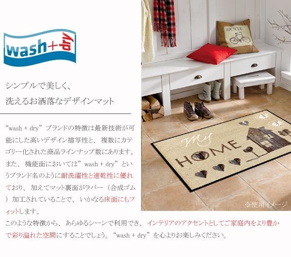 最新技術が可能にした高いデザイン描写が素敵なマットです。機能面においては「wash+dry」というブランド名のように、耐洗濯性と速乾性に優れており、加えてマット裏面がラバー(合成ゴム)加工されていることで、いかなる床面にもフィットします。あらゆるシーンで利用でき、インテリアのアクセントとして、ご家庭内をより豊かで彩り溢れた空間にすることでしょう。 |