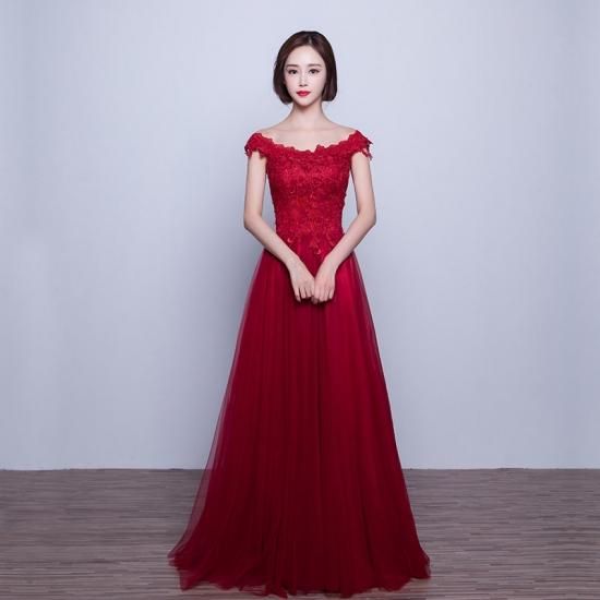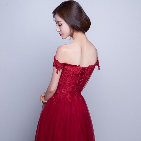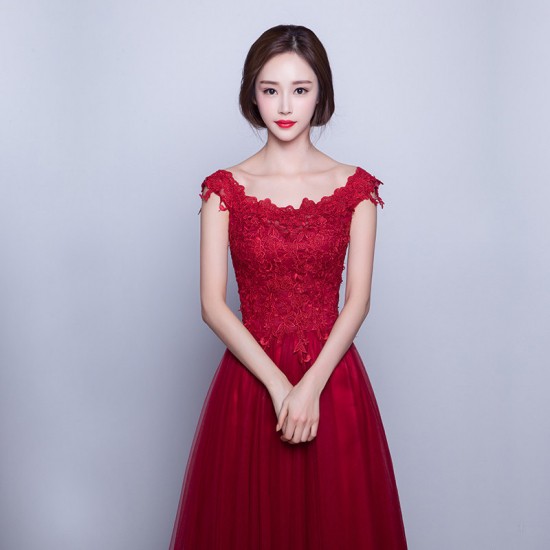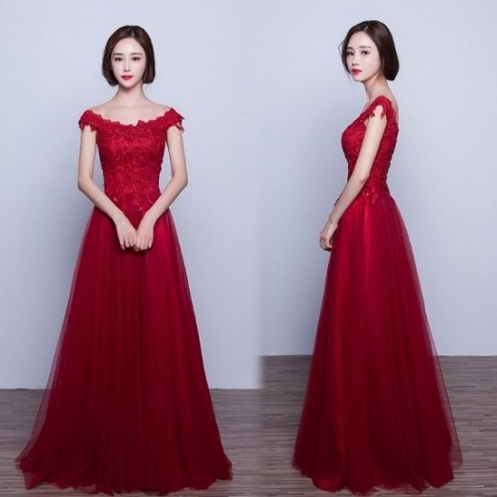 パーティードレス ロング丈 マキシ ワンピース チュールレース オフショルダー 花柄レース レッド 大人 上品 エレガント お呼ばれ drgz2318