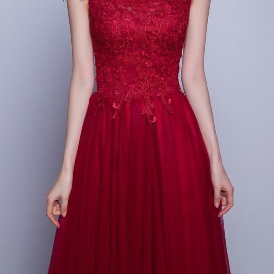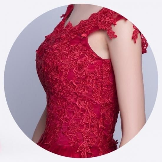 美しい深紅の、花柄レースロング丈ドレス。