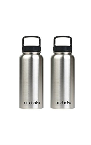 Stainless Steel Water Bottle with Easy Carry Lid - BPA Free Double Wall Vacuum Insulated - Wide Mouth, 32 OZ (Pack of 2)