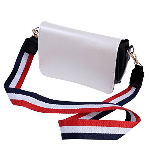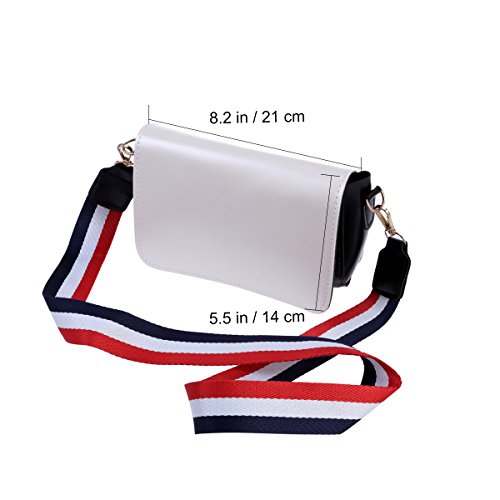 Features - Color: Beige - Material: PU leather, nylon - Size: about 21 x 14 x 6.5 cm/ 8.26 x 5.51 x 2.55 inch (LxWxH) - Simple but fashion design, bright color, non-fading. Multi-color striped nylon strap add more fun and individuality to your bag. - Suitable for girls and women to use. Perfect for daily shopping, work or travel use. - Sturdy and soft touch nylon shoulder strap for stable and comfortable wearing. Heavily-duty strap with elaborate craftsmanship enables strong durability. - High quality PU leather. Anti-scratch and wear resistance, waterproof and weather-resistant. Smooth surface offers extreme soft touch. - Large capacity. Enough room for holding daily stuff like phone, wallet, cosmetics and other items. - Multi-function. Acts as a crossbody bag, single-shoulder bag, handbag, etc.