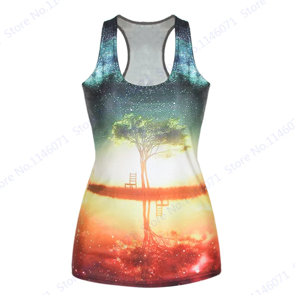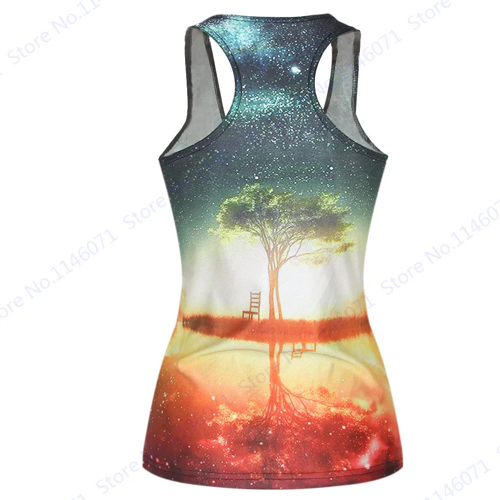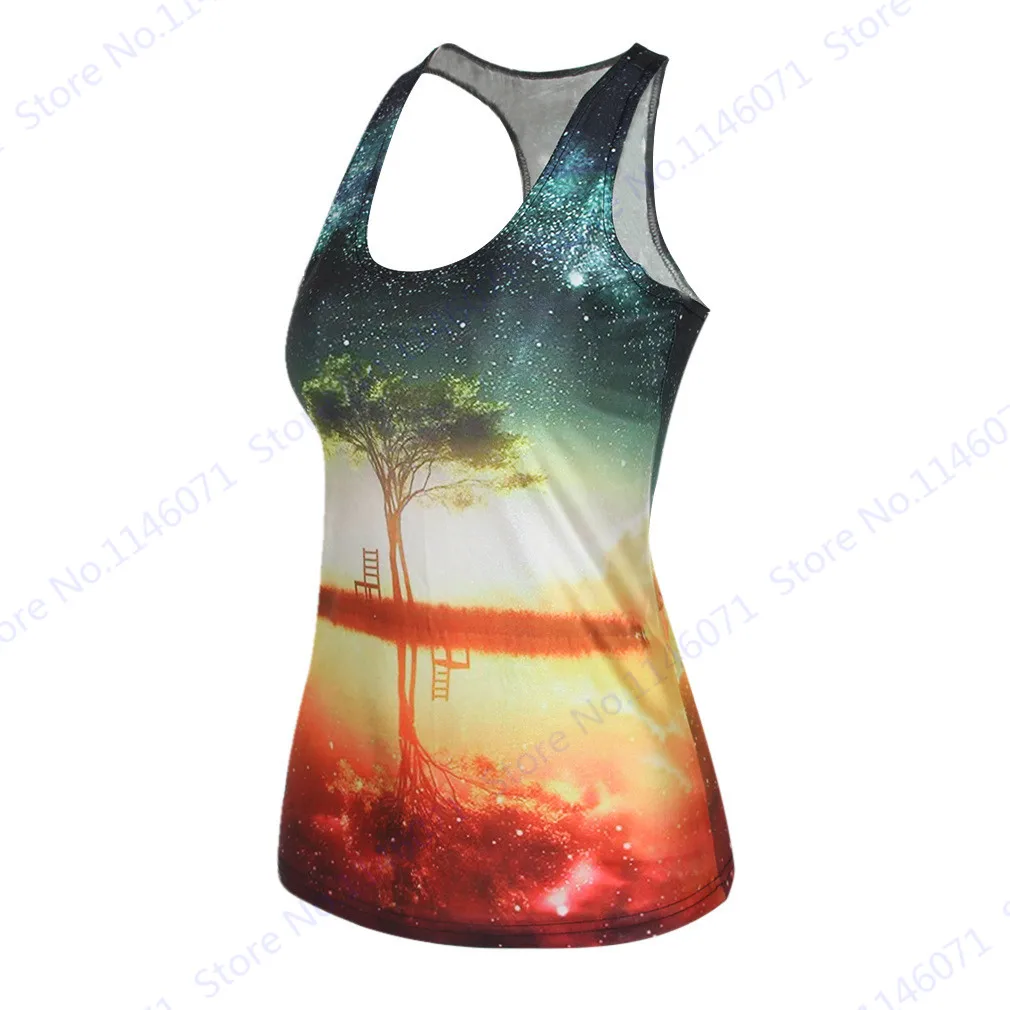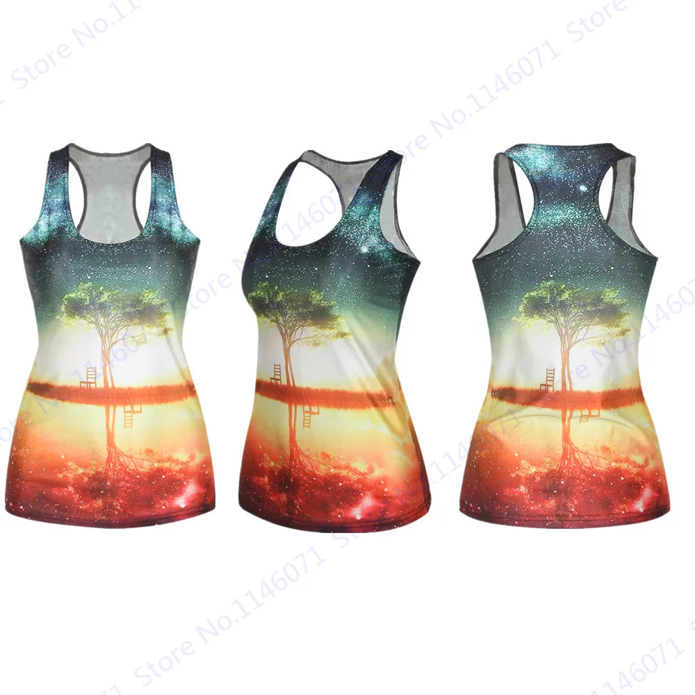 Features 2::Green Starry Night Fitness Running Tanks Femme Sleeveless Sports Shirt