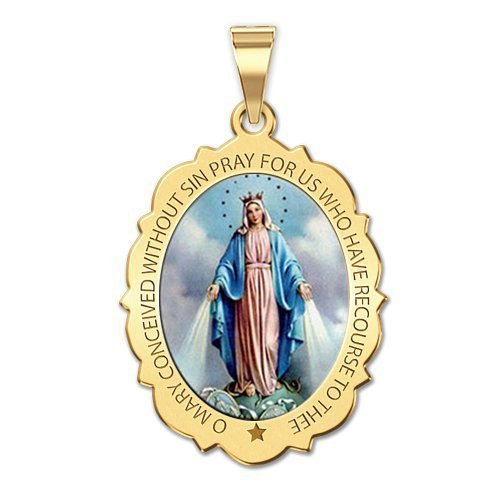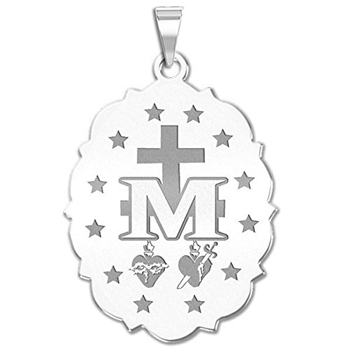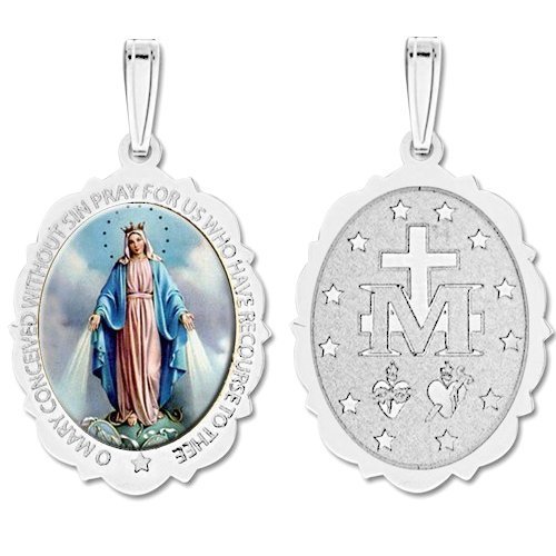 -. Title : Miraculous Medal Scallopped Oval - 3/4 Inch X 1 Inch- Sterling Silver