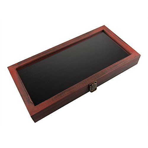 -. Feature : MATERIAL - Made of quality wooden, this ring box is superexcellent to protect your beloved rings from scratch and damage. / LARGE REAL GLASS LID - Real glass lid keeps your jewelry from dust, and offers you an open view of the displayed jewelry. / NICE GIFT IDEA - The distressed looks adds character, this ring case is great for personal use, shop display and home decoration. / SPACIOUS ROOM - The jewelry display box holds 72 rings. / PRODUCT SIZE - 14-1/4"W x7-1/4"D X1-1/2"H