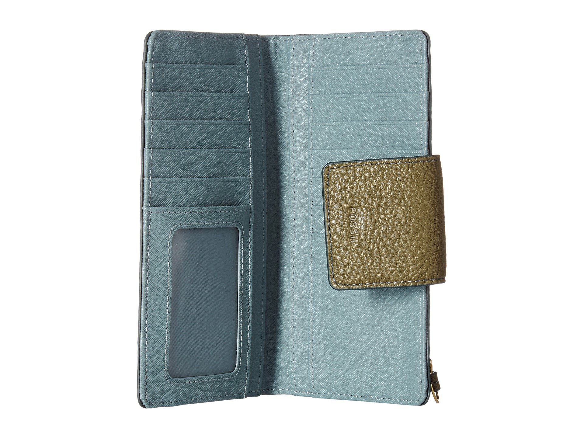 | Product Information SKU: #8771226Treat yourself to a brand new wallet with a stunning style, the Fossil? Emma Tab Clutch with RFID.Made of man-made material.Snap closure.RFID protection.Exterior back zip pocket.Signature logo embossed detail in front.Lining made of textile.Two interior bill compartments.12 interior credit card slots with ID window.Imported.Please note, the hardware color and interior lining may differ from the color shown in the photo.Measurements: Bottom Width: 7 in Depth: 1 1?4 in Height: 3 3?4 in Weight: 5 oz |