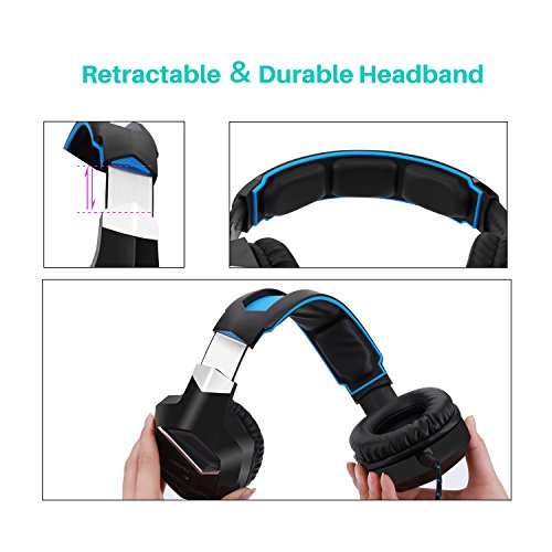 ▶ Humanized Design: The retractable headband design with synthetic leather-wrapped ear-cushions allows you to play for hours in complete comfort; Adjustable headband suits all gamers at any age.