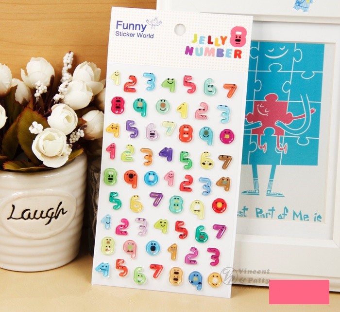 12 pcs/Lot Funny sticker world 3D epoxy Jelly number alphabet stickers for phone notebook diary photo album Stationery 6925