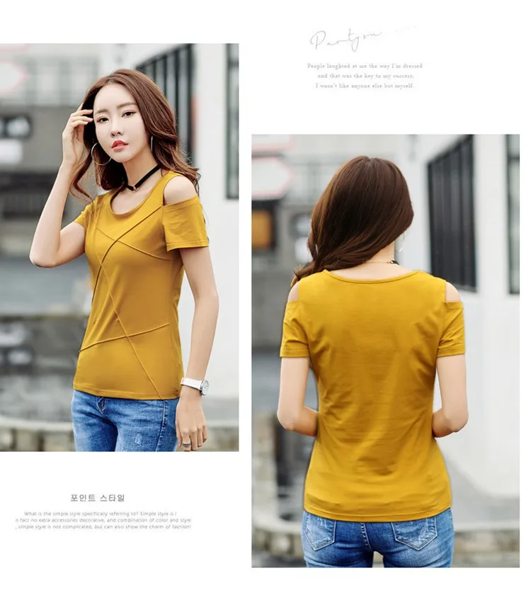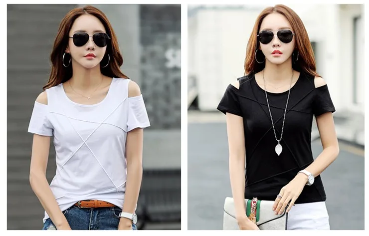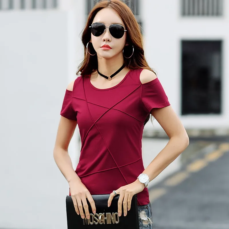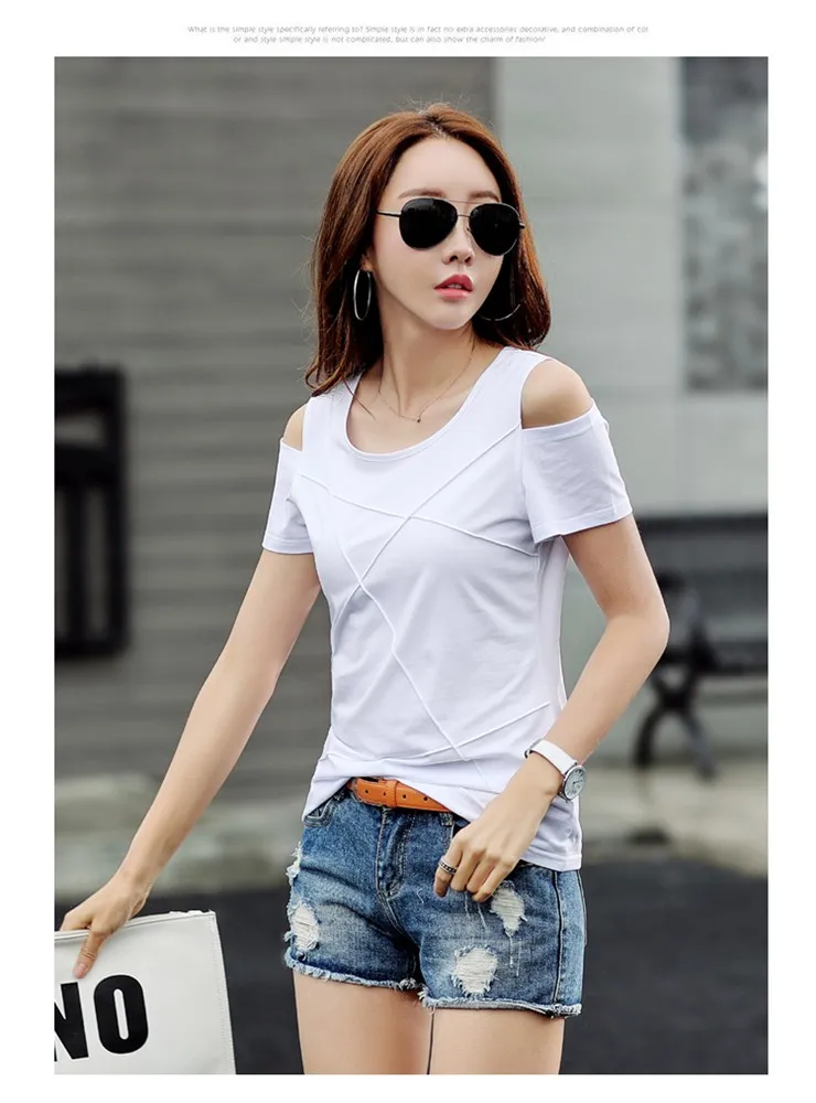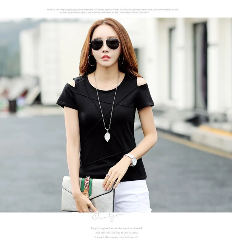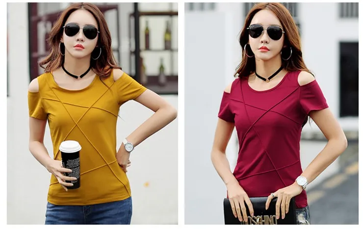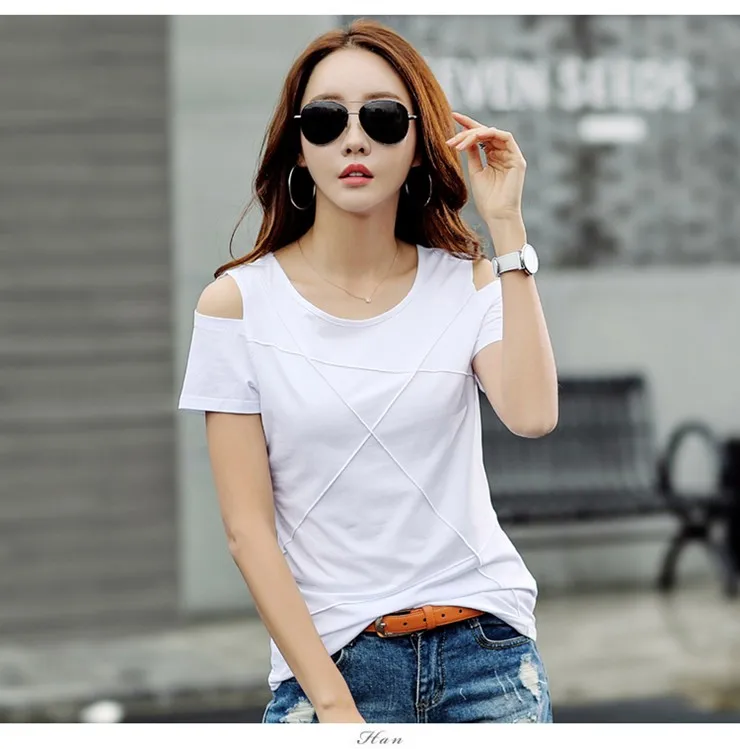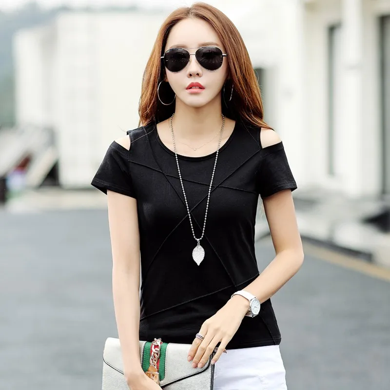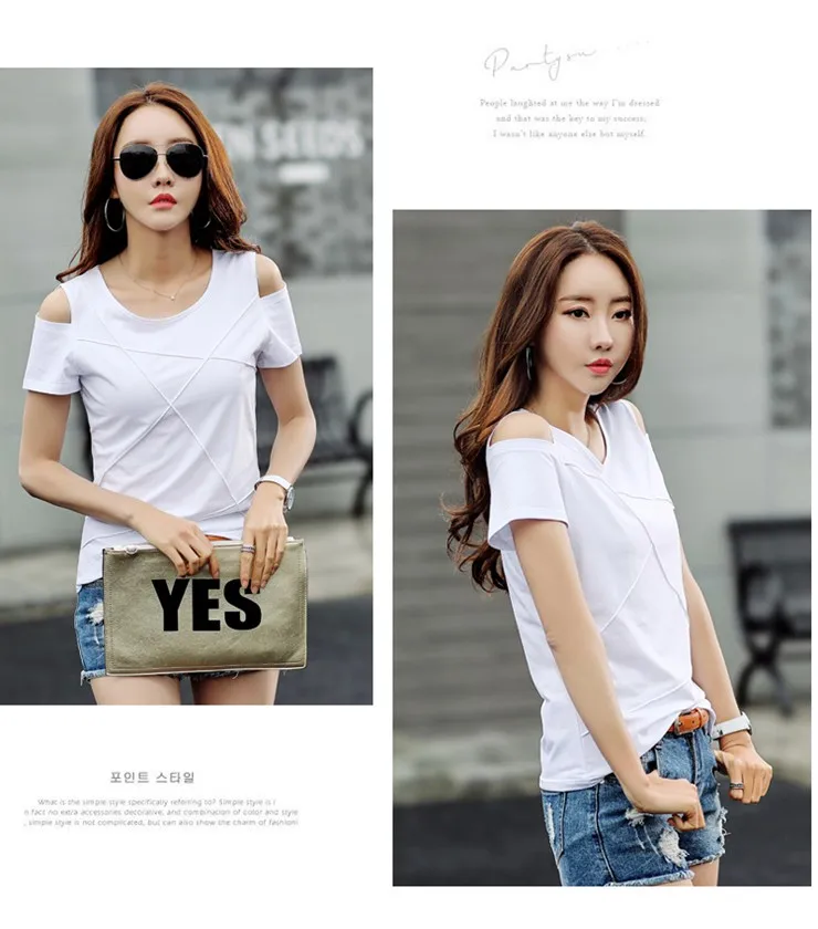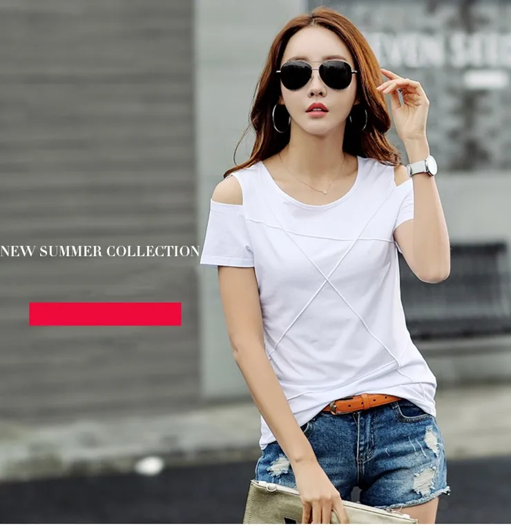 Tshirt Femme :2018 New Summer T-shirts Women Tshirts Ladies Open Shoulder Tops Tees