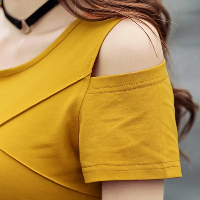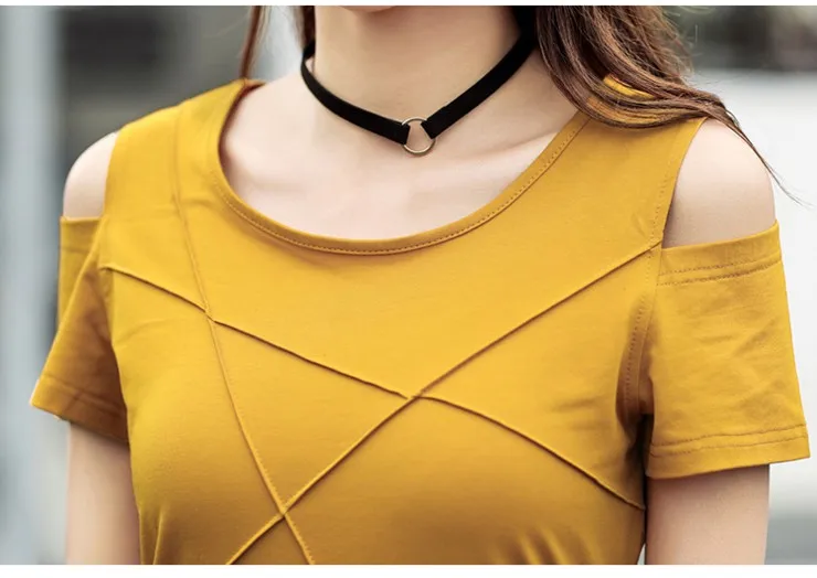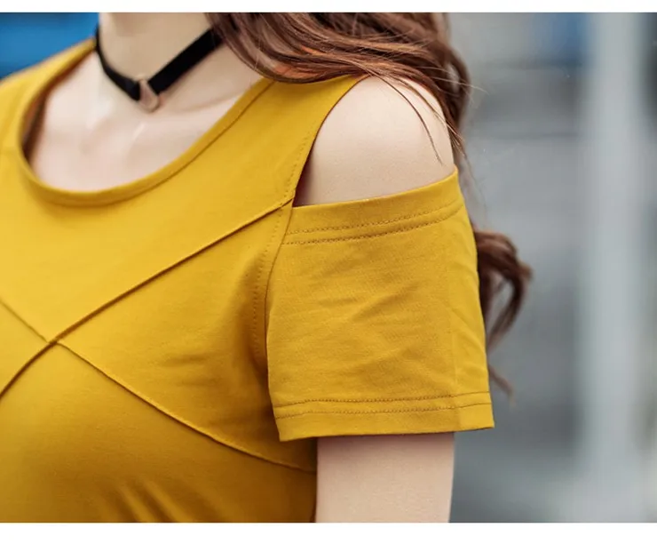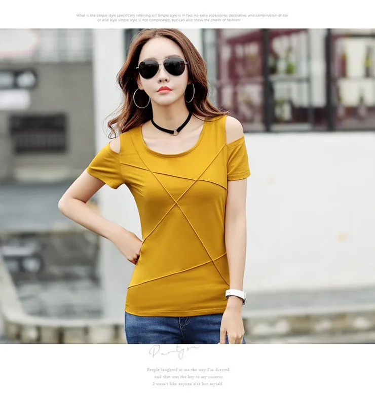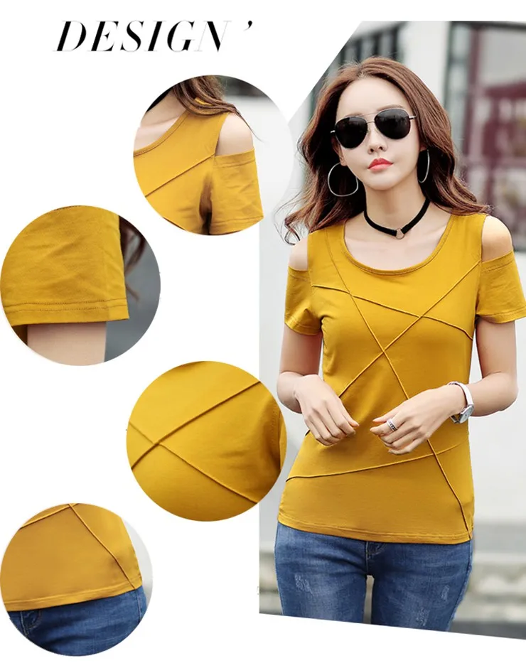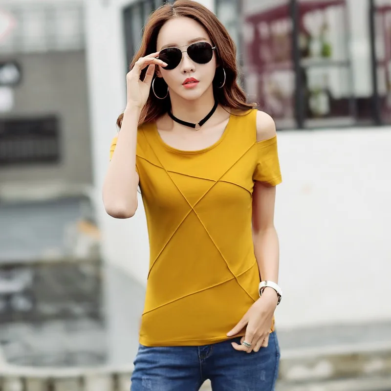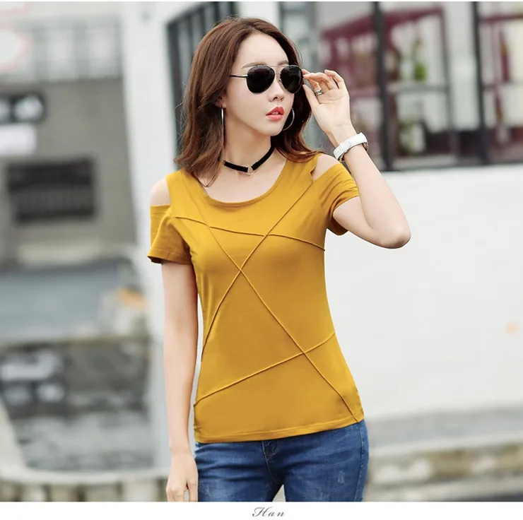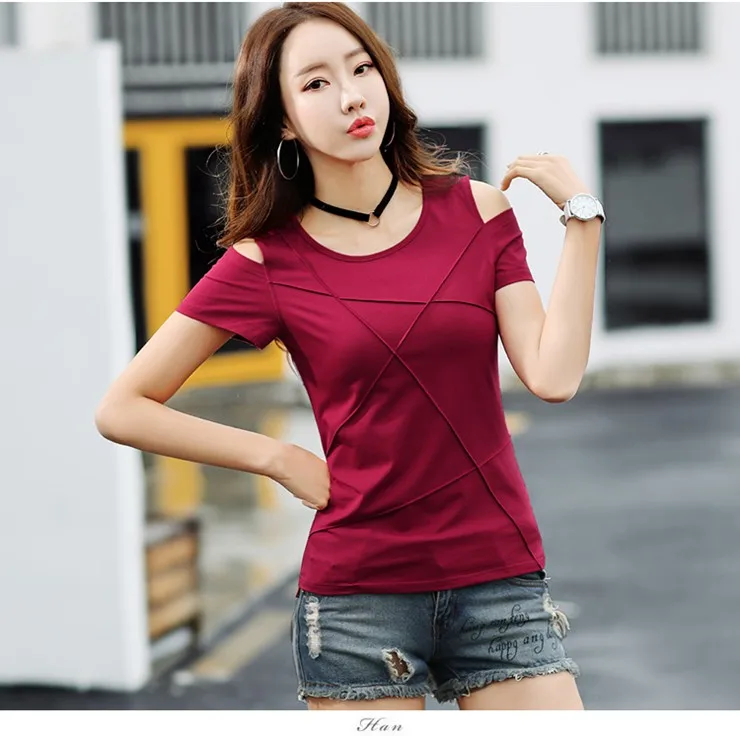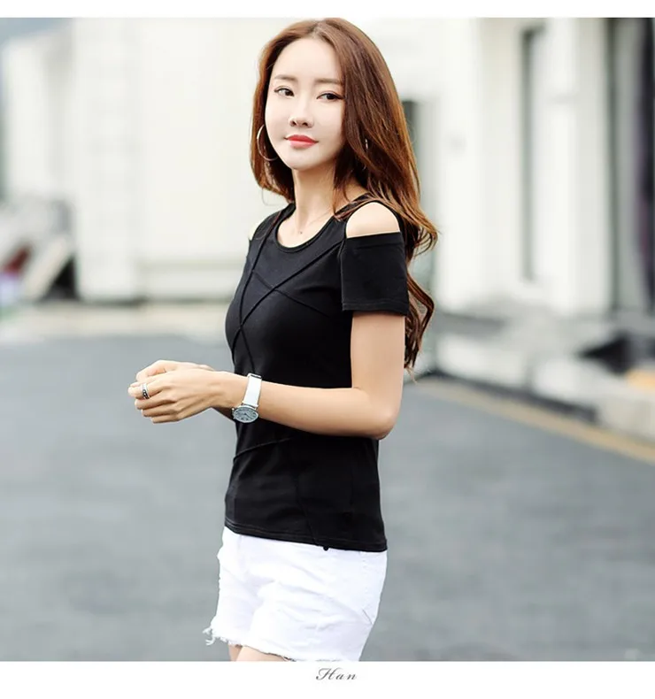 Tshirt Femme :2018 New Summer T-shirts Women Tshirts Ladies Open Shoulder Tops Tees