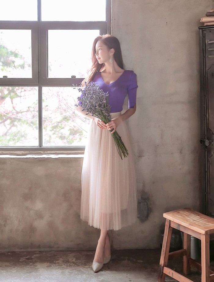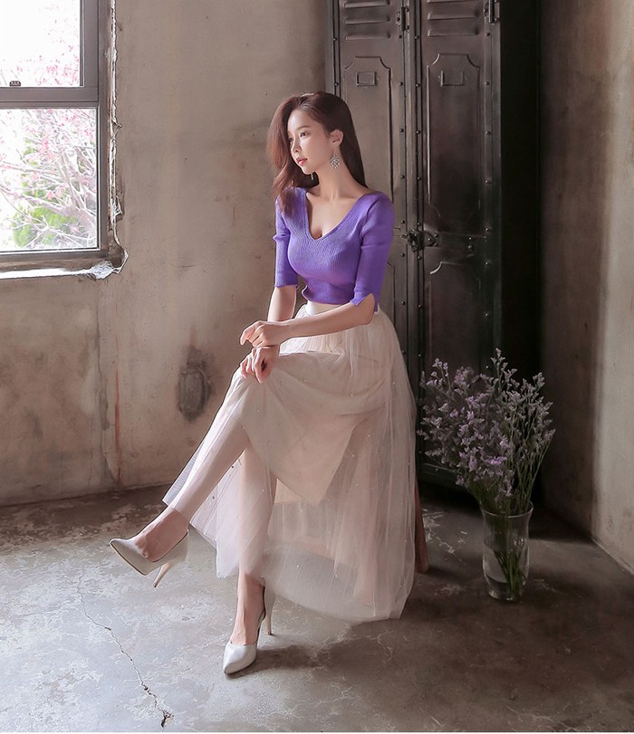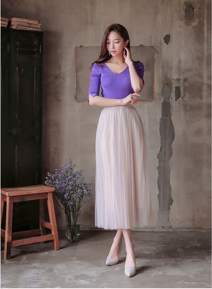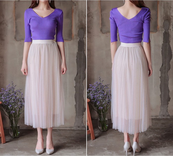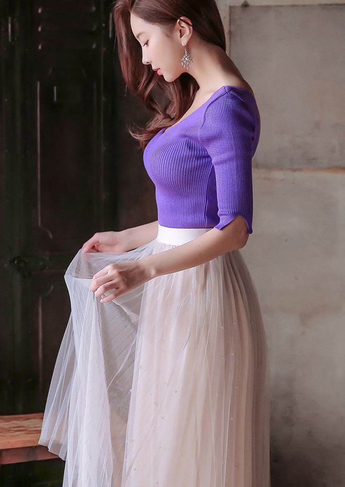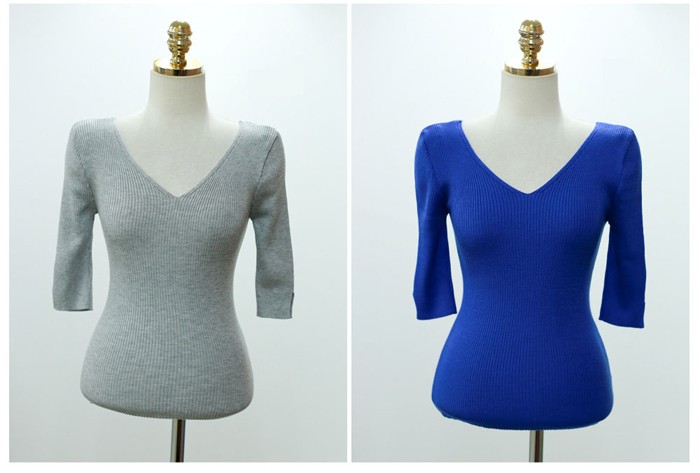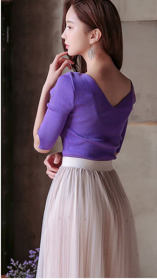 商品名:ニット トップス セクシー 半袖 無地