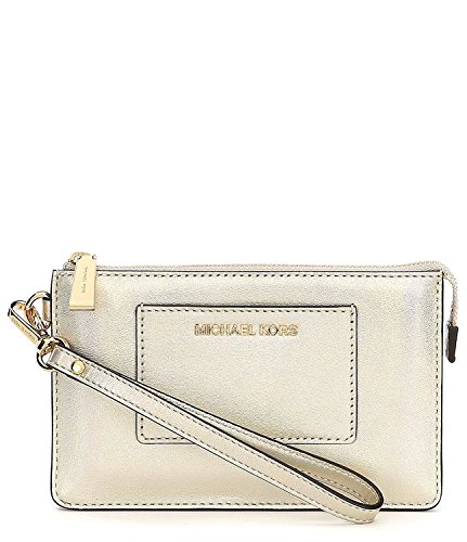 Michael Kors Small Gusset Pocket Silver Leather Zip Top Wristlet - Pale Gold