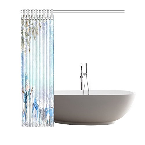 InterestPrint Christmas Greeting Snowman Home Decor, Pine Branches Winter Landscape Polyester Fabric Shower Curtain Bathroom Sets with Hooks 72 X 72 Inches