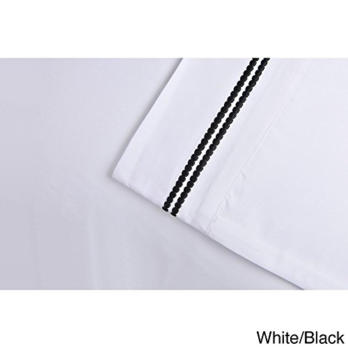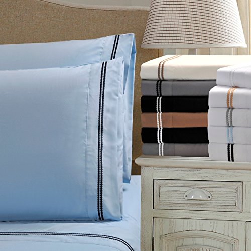 Studio : Home City Inc. Publisher : Home City Inc. Product Description Rest easier with this silk-like wrinkle-resistant sheet set. Made from soft microfiber material, this sheet set features intricate embroidery for added elegance. The fitted sheet has durable elastic to help it stay secure on your mattress, and this elegant bedding comes in a variety of colors to suit your needs.Set includes: One flat, one fittedWeave: PlainSheet type: PrintedFitted sheet pocket depth: 15-18 inchesFully elasticized fitted sheet: YesColor options: Black/ grey, black/ white, grey/ black, grey/ white, ivory/ taupe, light blue/ navy blue, taupe/ ivory, white/ black, white/ blue, white/ gold, white/ grey, white/ whiteTheme: 2-line embroideryGender: UnisexMaterials: 100-Percent microfiberCare instructions: Machine washableFull dimensions:Fitted sheet: 54 inches wide x 75 inches longFlat sheet: 81 inches wide x 96 inches longQueen dimensions:Fitted sheet: 60 inches wide x 80 inches longFlat sheet: 90 inches wide x 102 inches longKing dimensions:Fitted sheet: 78 inches wide x 80 inches longFlat sheet: 108 inches wide x 102 inches longCalifornia King dimensions:Fitted sheet: 72 inches wide x 84 inches longFlat sheet: 108 inches wide x 102 inches longTwin dimensions:Fitted sheet: 38 inches wide x 75 inches longFlat sheet: 66 inches wide x 96 inches longTwin XL dimensions:Fitted sheet: 38 inches wide x 80 inches longFlat sheet: 66 inches wide x 100 inches longThe digital images we display have the most accurate color possible. However, due to differences in computer monitors, we cannot be responsible for variations in color between the actual product and your screen. 0