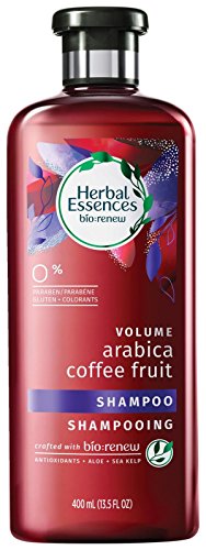 -. Feature : Crafted with bio:renew, a signature blend of essential antioxidants, aloe and sea kelp / Herbal Essences with bio:renew brings your hair back to life in just 21 days / Arabica Coffee Fruit Shampoo has 0% parabens, gluten and colorants / Shampoo that is color safe and provides volume / Experience the multi-layered scents of delicious crushed berries, warm caramel latte, and patchouli