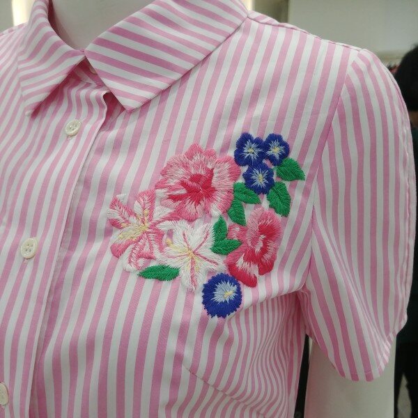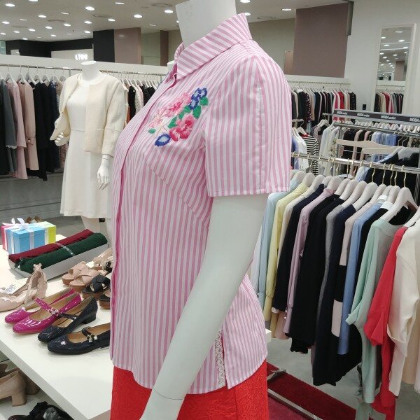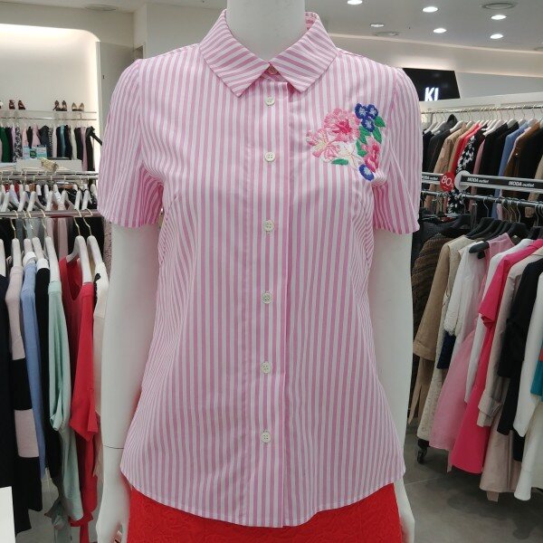 시원한 코튼 스트라이프 소재의 기본 핏 바디에 플로랄 자수 모티브가 귀엽게 배치된 블라우스입니당 ♥♥♥