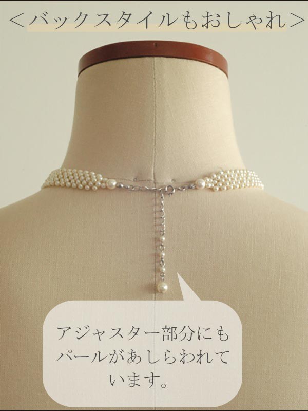 POINT → 素材にはグラスパールを使用しているので、重量感ときらめきがあります。 アジャスター部分にもパールが施されて、おしゃれです。 (以前はリボンタイプでしたが、デザインがかわりました。)