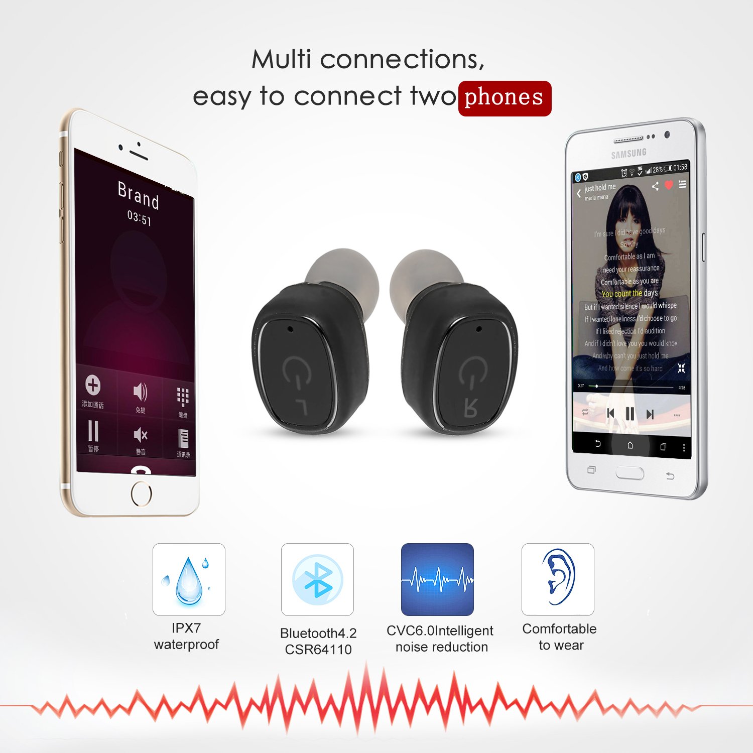 Bluetooth: V4.2 CSR 64110 compatible profile: HFP HSP A2DP AVRCP