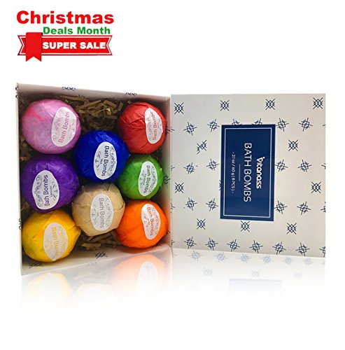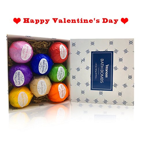 PERFECT GIFT IDEAS for the one you Love!Perfect gift for Fathers Day Gifts, Birthday Gift,Valentines Gift,Christmas Gift,Relaxation Gifts for Women,Man,Mom,Wife, Girlfriend,Teens, Her. Give Him/Her A In-Home Spa or Fun bathing. #9829Our Bath Bomb Gift Set - 8 uniquely designed Moisturizing Essential Oil Bath Bombs Each about 2.1oz,60g. Each 2.1oz Bath Bomb Is Individually Wrapped And Presented In A Unique Gift Paper. ♥ 100% Natural and Organic Ingredients? Baking soda, Citric Acid, Natural anhydrous sodium sulfate, Dead sea salt,Epsom Salt, Kaolin Clay, Water, Shea Butter, Cocoa Butter, Sunflower Oil, Essential Oils, Vitamin E. #9829HOW TO USE? Select a bath bomb and Place your fizzer into a warm tub that's approximately one-half full. As soon as the bath bomb enters the water, it will start to foam and fizz. Over time, the bath bomb will start to break apart and dissolve, thus releasing gentle bubbles of all the beneficial oils, salts, Vitamin E and butters to be released into the bath water. #9829Each of the 8 bath baths gives unique experience. The 8 scents: - Mint - Rose - Lemon - Lavender - Eucalyptus - Vanilla - Milk - Ocean Makes A Great Gift For Any Occasion and The Holidays! 100% SATISFACTION GUARANTEED WITH PREMIUM NATURE PRODUCTS! 0