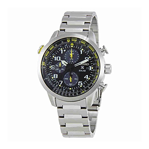 -. Title : Seiko SSC369 Men's X Prospex Silver Bracelet Band Black Dial Watch