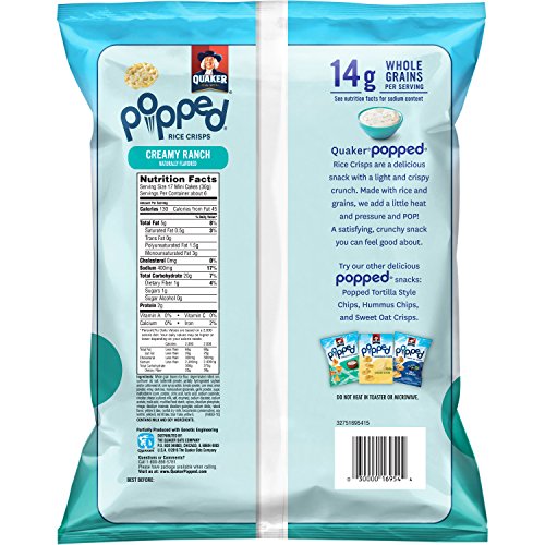 -. Title : Quaker Popped Rice Crisp Snacks, Gluten Free, Creamy Ranch, 6.06 Ounce Bag