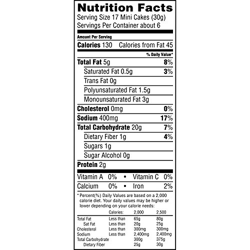 -. Feature : Rice crisps with savory ranch flavor / Gluten free / Made with popped whole grain brown rice / Only 130 calories per serving / 13g of whole grain per 30g serving (See nutrition information for sodium content)
