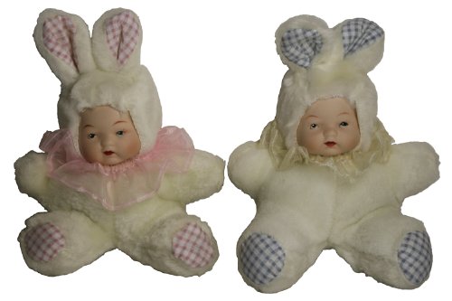 - Title : Porcelain Sitting Doll Baby (6 Inches) Twin in Cute Bunny Rabbit Cloth Costume Best Gift for Christmas
