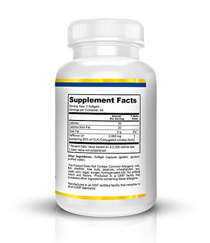 -. Feature : CLA WORKS OR YOUR MONEY BACK! - There's No Risk When You Order, Because If You Aren't Completely Satisfied, You'll Receive 100% Of Your Money Back. / CLA 2000 Is The Best in CLA Weight Loss Supplements. The Potent Garden CLA provides 90 Pills Per Bottle. Is Non-GMO. We Will Help You Reach Your Goals With Our High Serving Size, softgels. / MOST POTENT, EASY TO SWALLOW PURE CONJUGATED LINOLEIC ACID with Safflower Oil - a powerful weight loss supplement that acts as a fat blocker and natural lean muscle producer. CLA Safflower Oil pills are also a powerful vitamin to support your body's immune system and overall health. Put this belly buster to work and feel GREAT! / Rapid Production of Lean Tissue: Numerous clinical studies have shown that it can prevent your body from storing fat, curb your appetite and promote lean muscle mass. Together with a balanced diet and regular exercise, CLA 2000 is a great, non-stimulating addition to your overall weight-loss plan. / WE GUARANTEE YOU WILL WANT TWO! Our powerful Conjugate Linoleic Acid supplement is so effective you will want to get two bottles at a time to maximize your results.