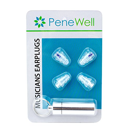 Safety Ear Plugs by Penewell Protects Both Hearing and Sound Quality Unique Design Transparent Silicone Body Hypoallergenic Washable Reusable Travel Case Included (Silver package)