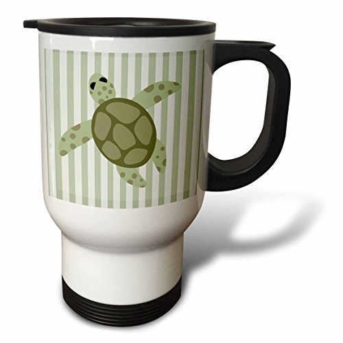 3dRose Cute Sea Turtle Design Green Stripe Travel Mug, 14-Ounce, Stainless Steel