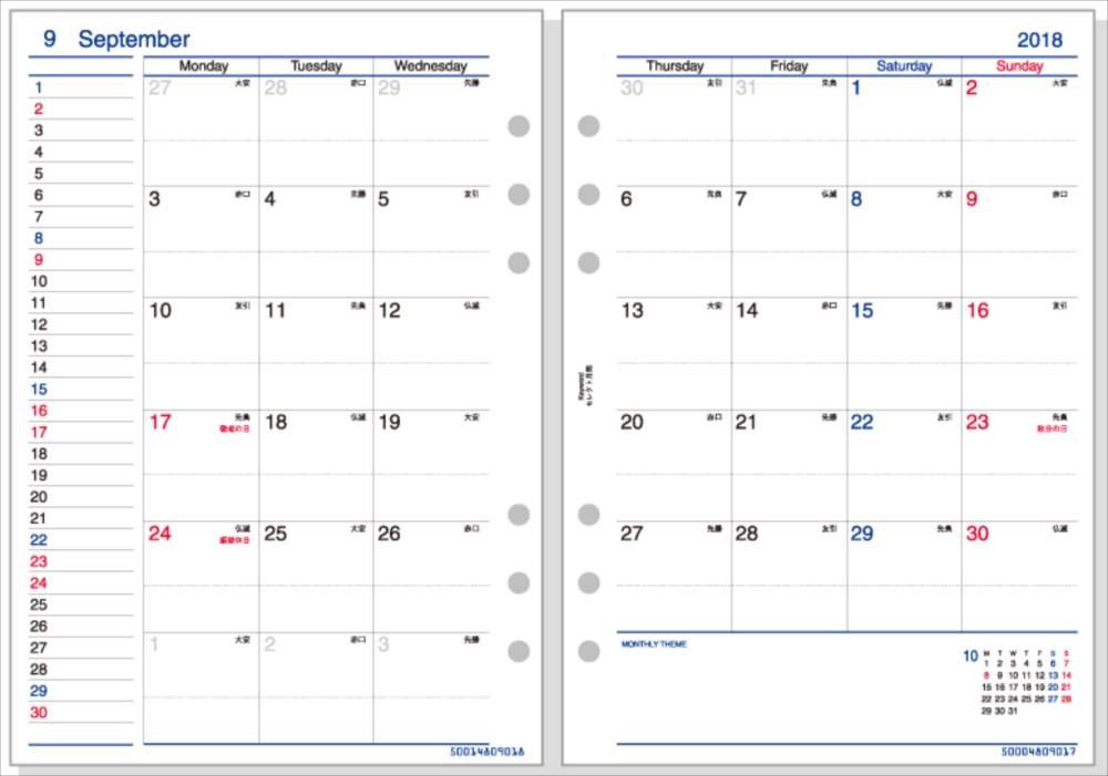 The monthly calendar is a block type beginning on Monday that enables you to grasp the schedule of a month at a glance.