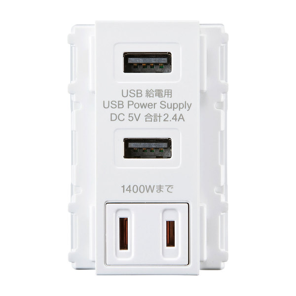 ●5V2.4A高出力急速充電が可能な2ポート壁埋め込み型USBコンセントです。