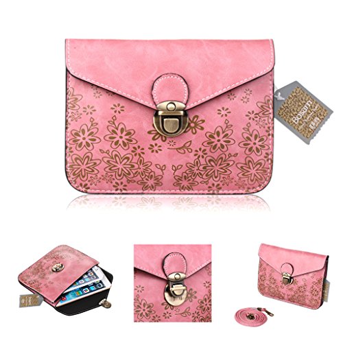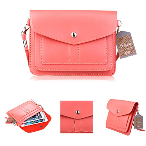 Bosam Hot Summer Popular Universal Cute Stylish Cross-body Large Cell Phone Case Girls Purse Cell Phone Case Cove Soft PU Leather Mobile Pouch Snap Button Shoulder Bag Phone Bag Key Bag with Detachable Strap for Apple iPhone 6 (4.7) iPhone 6 Plus (5.