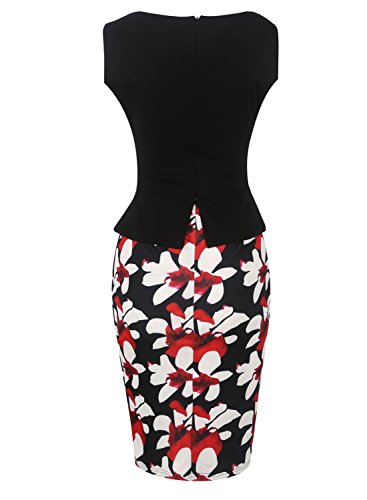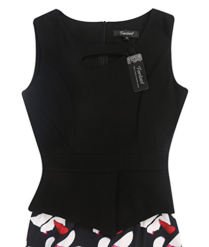 Fantaist Women's Keyhole Neck Floral Print Cotton Peplum Bodycon Office Dress Item Type:Peplum Bodycon Office Dress