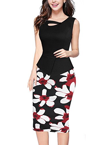 Design:One piece set peplum midi dress,floral print bodycon pencil skirt,keyhole neck,sleeveless for summer,button decoration,smooth back zipper,back split at the bottom.