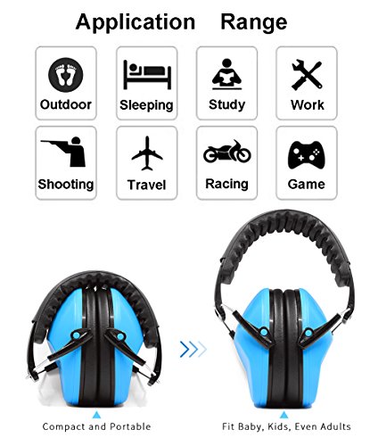 - Kids ear muffs noise protection,compact folding, swivel cup, easy to storage and portability, adjustment pin of the earmuffs for a perfect fit from kid to adults