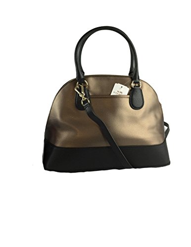 COACH BICOLOR METALLIC CORA DOME SATCHEL - BLACK/BRONZE