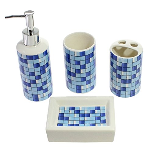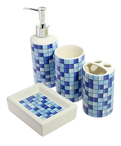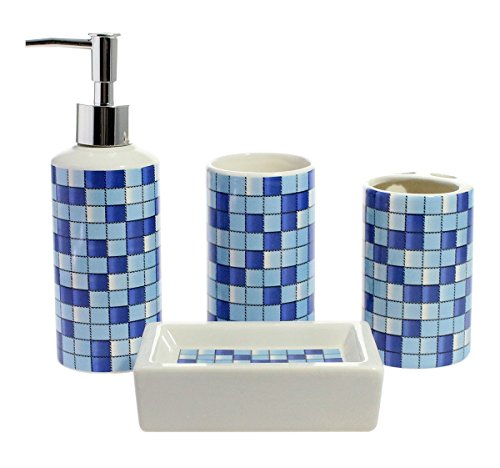 - Brighten up your bathroom with this revitalizing blue mosaic designed bathroom accessory set