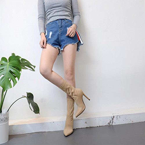 Studio : ALUS Publisher : ALUS Binding : Kitchen Product Description Product Name: Fall and winter models shoes Upper material: elastic cloth Sole material: non-slip wear-resistant rubber sole Ways of wearing: sets of feet With high: 11cm, waterproof Taiwan: 1cm Size: As shown (standard size, foot fat recommended to buy a large 1-2 yards) Toe shape: pointed Popular elements: fine with For the season: autumn and winter Quantity: 1 pair Features: ★ stylish pointed design, easy pedicure, but also highlight the quality. ★ elegant and comfortable with fine, with a visual impact, highlighting the elegant elegance of women, filling charm. ★ non-slip wear-resistant rubber outsole. Care instructions: 1. Use neutral soap or detergent water to clean 2. Insert the newspaper in the shoe 3.Shoe should be placed in ventilated place, wrap the facial tissue in the upper to avoid excessive direct sunlight Reminder: Do not soak too long, separate cleaning with other shoes, to avoid string color! 0