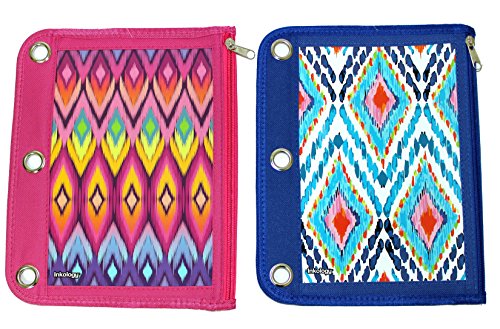 Inkology Ikat Binder Pencil Pouch, 10.5 x 8.25 Inches, Pink and Blue - Color will Vary (414-1)