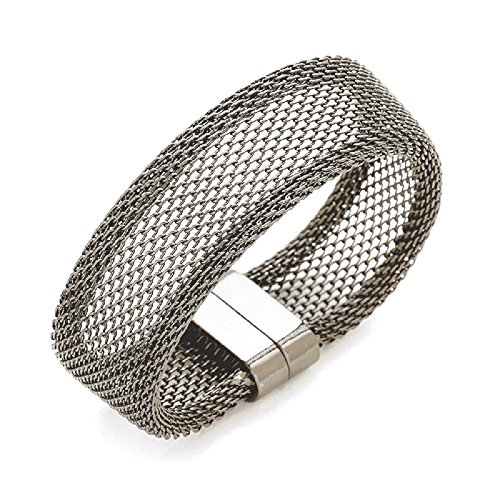 Black Metal mesh magnetic bracelet. Size : 0.8" H, 7.5" L.
