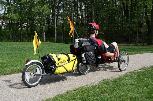 These panniers fit our TerraTrikes well and attach easily to our rear rack. They can be used in conjunction with the seat bag and the trunk bag.