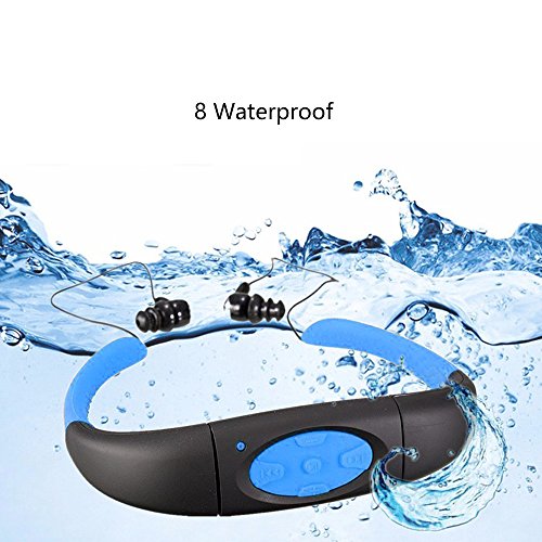 Schwimmen MP3 Player, Yikeshu IPX8 Wasserdichte Sport MP3 mit FM Radio Musik-Player Stereo-Ohrhorer fur Schwimmen 3-5 Meter Tauchen Radfahren Surfen Running Sport