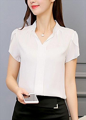 원본상품명: (フムフム) fumu fumu レディ?スファッション トップス ブラウス 白 半袖 オフィス Vネック 大きいサイズ シャツ