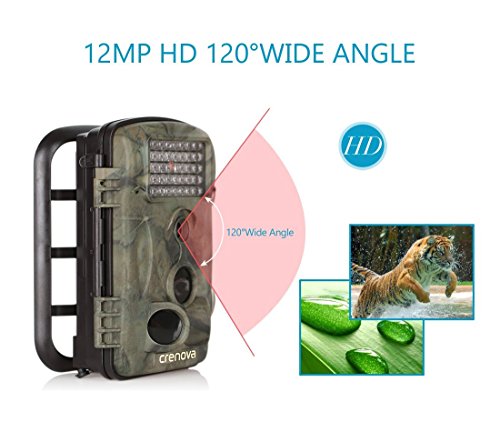 Crenova Game and Trail Hunting Camera 12MP 1080P HD With Time Lapse 65ft 120° Wide Angle Infrared Night Vision 42pcs IR LEDs 2.4" LCD Screen Scouting Camera Digital Surveillance Camera