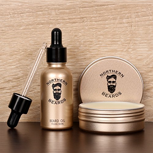 Beard Oil Beard Balm Kit | Beard Growth Grooming Kit with 100% Natural, Unscented, Organic Beard Oil & Balm by Northern Beards